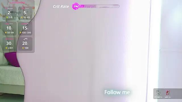 Her follower meter hit 94767 during her most recent 30 day stretch. In her most recent 30 days on cam, her smallest one day follower tally was 92507. Over the past month on cam, she added 2260 new followers. Over the past 30 days, each freechat session averaged 59 minutes. Over the past 30 days of broadcasting, her longest freechat run hit 8.3 hours. During the past 30 days on cam, she totaled 202 freechat sessions. During her last 30 days streaming, freechat status ran 8 days. In her recent month on screen, she totaled 9 days of online presence. During her last month of streaming, private sessions typically lasted 8 minutes. In her recent 30 days live, her maximum private session went 88 minutes. In her most recent 30 days of broadcasting, she held 141 private sessions. During the last 30 days, her average viewers per session was 14. her largest one stream crowd in that 30 day span was 29. Over the past month of live performances, she saw 339 viewers